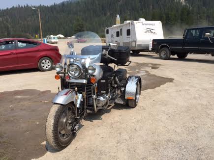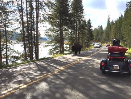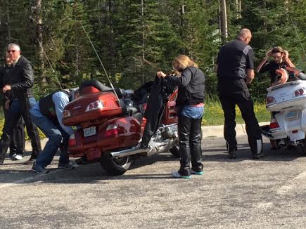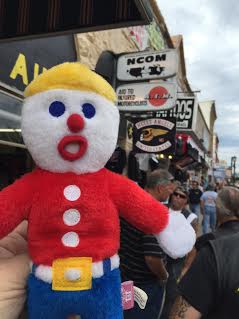 Saturday, August 8, dawned nice and clear but cool. Thunderstorms were forecast for the afternoon. This was our day to travel around the area and check out the 75th annual motorcycle rally which was Sturgis 2015. We had heard stories from travelers we met leaving the area – that the town had been closed and 3000 bikes had been turned away, that there were over a million bikers this year, and that the body count for biker lives lost was 9 (as of Thursday, 8/6). Our friends had been through the area, but never during bike week. I think they were shocked as we approached Custer that every surrounding town was part of the rally. There were bikes everywhere. We headed into Rapid City SD to look at the Harley dealership there. It was crowded, as usual, but we got there early and left as the crowds began to arrive and the weather grew hotter. Then we headed into Sturgis.